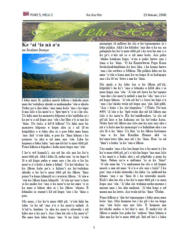 | Puke 5, Helu 1 - 30 ʻIanuali, 2006