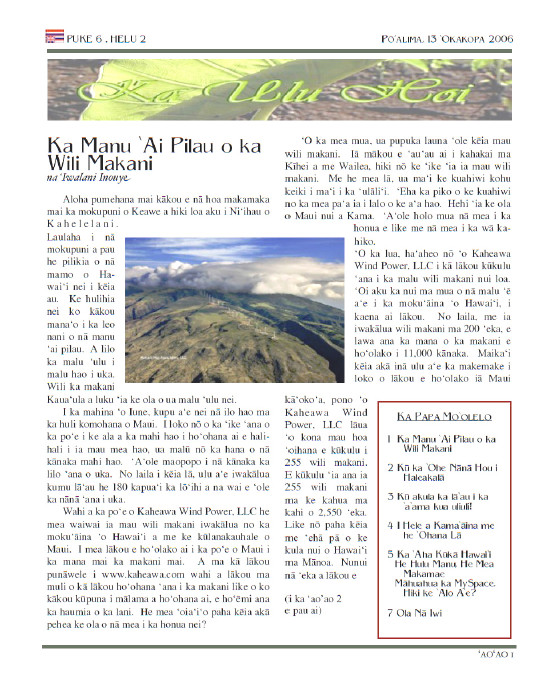 | Puke 6, Helu 1 - 15 Kepakemapa, 2006