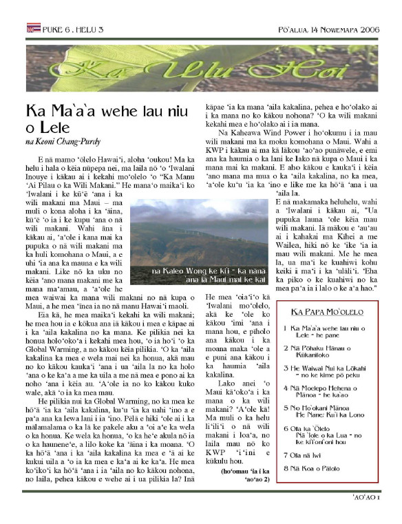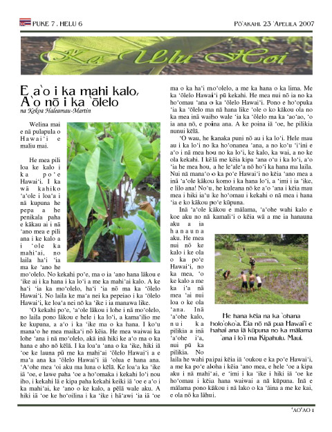 6. E ka haumāna hou o ka ʻōlelo Hawaiʻi, aloha mai! Pila Wilson