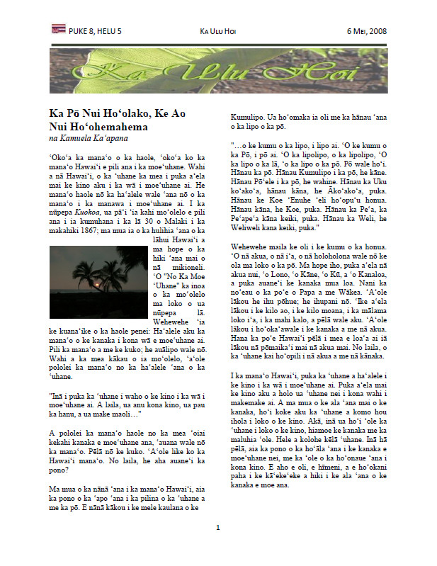| Puke 8, Helu 7 - 16 ʻOkakopa, 2008