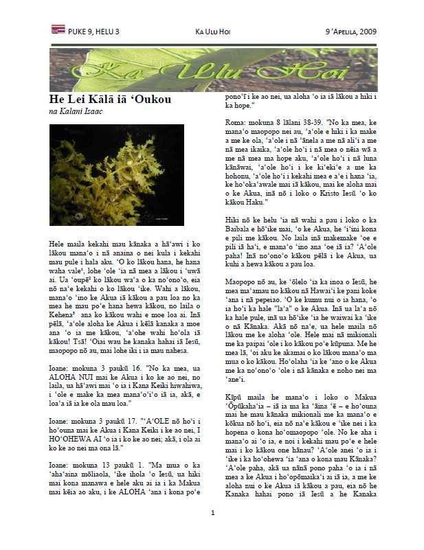 | Puke 9, Helu 1 - 5 Pepeluali, 2009